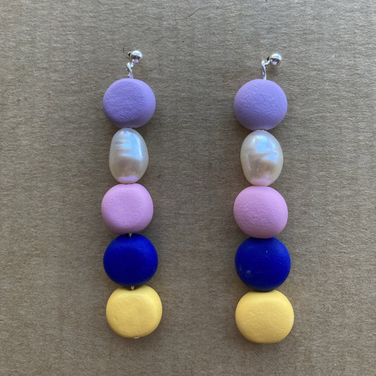 Splits Mustard and Hyacinth Beaded Pearl Drop Earrings