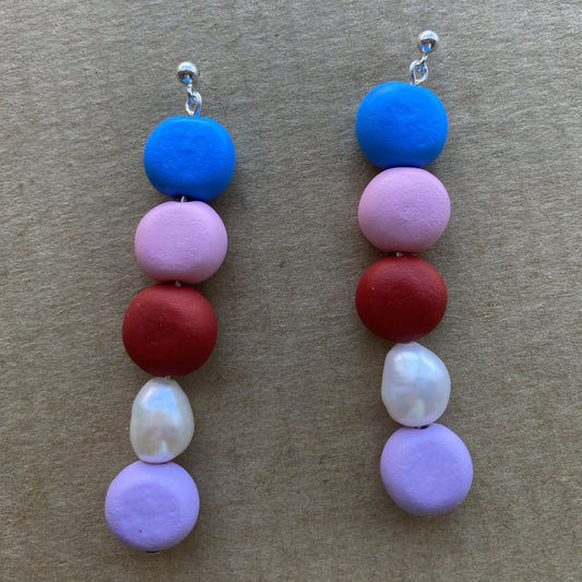 Splits Paprika and Lilac Beaded Pearl Drop Earrings
