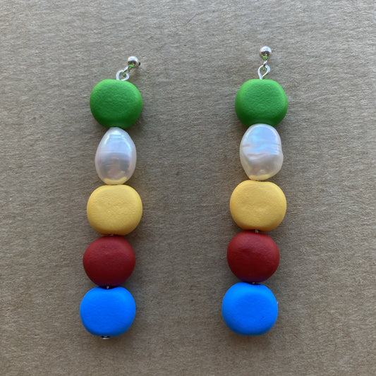 Splits Caramel, Blue and and Wasabi Beaded Pearl Drop Earrings