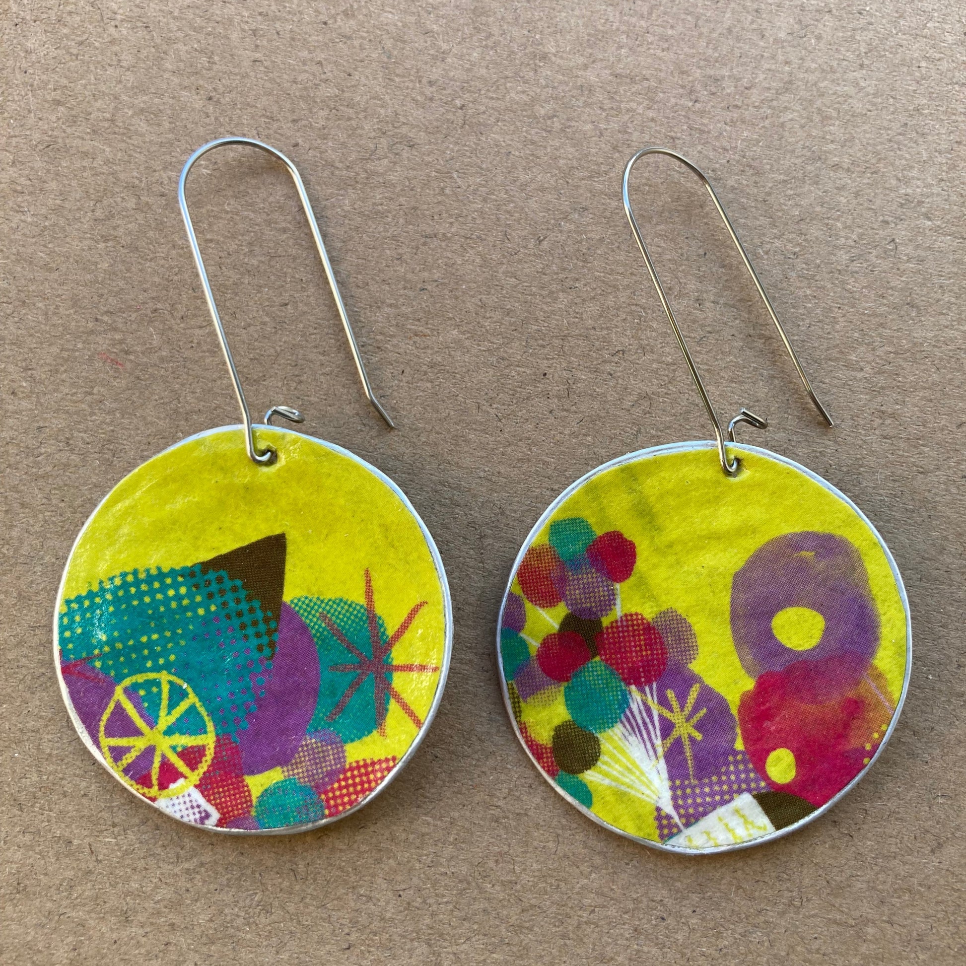 Edie and Bill earrings are made from recycled coffee pods and recycled magazines, creating stylish earrings and good for the environment.