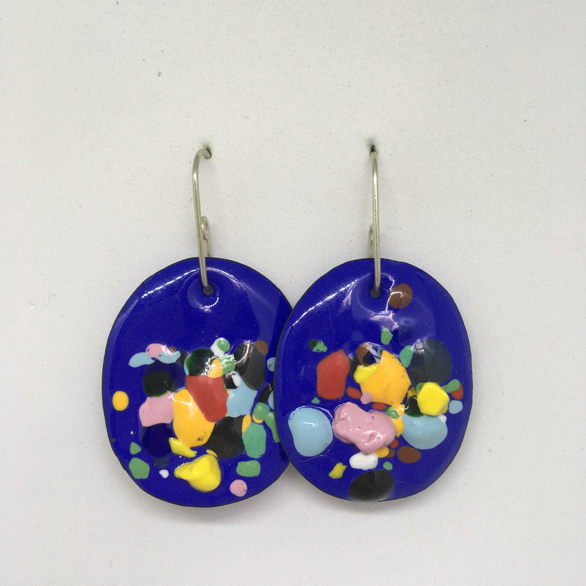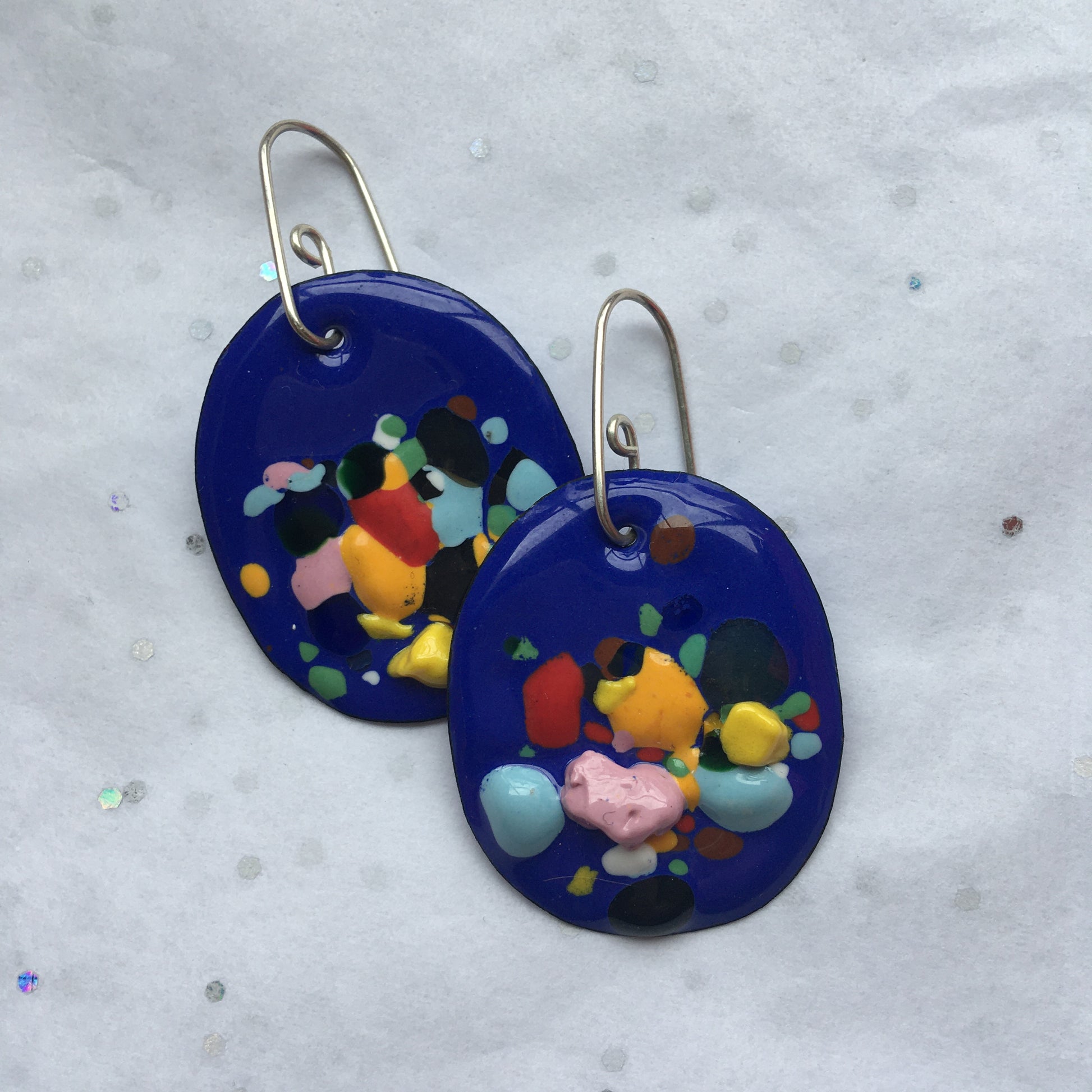 Jenna O'Brien is a Melbourne based jeweller who handcrafts colourful and engaging pieces. Handmade enamelled earring with handmade sterling silver hooks.