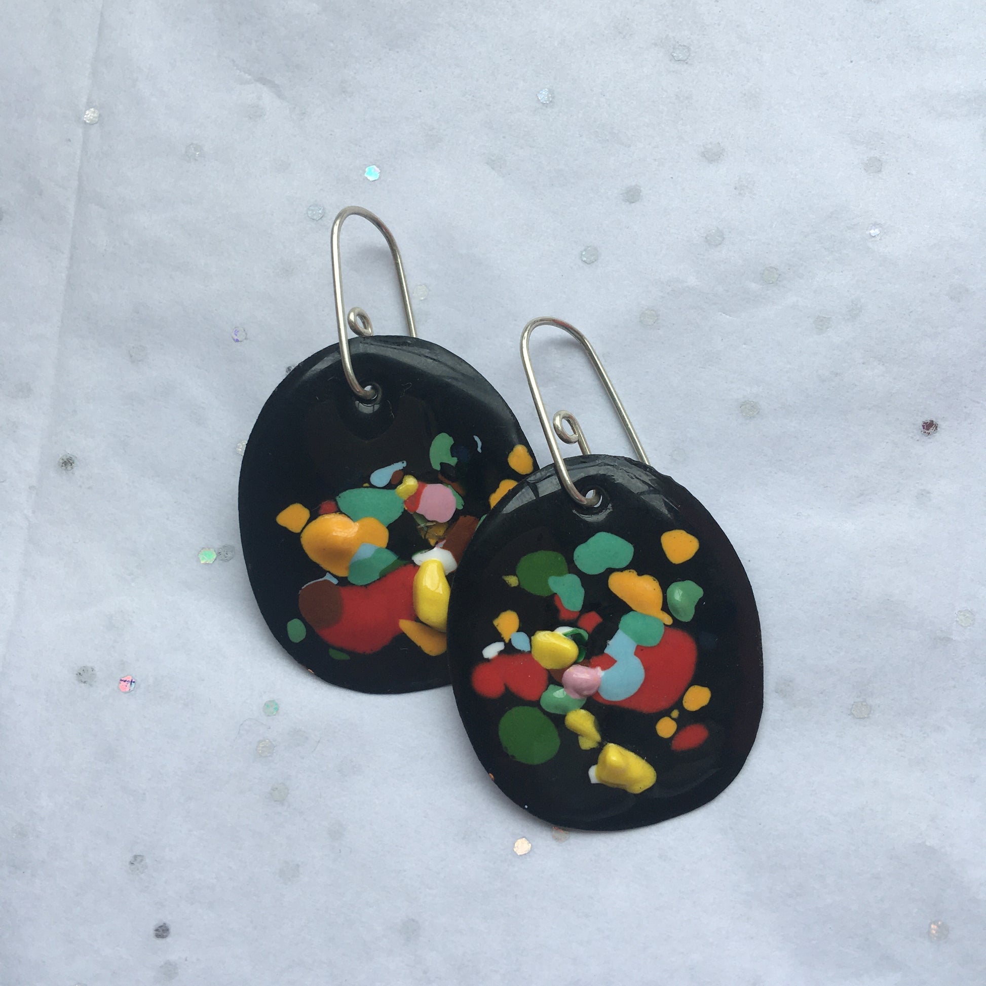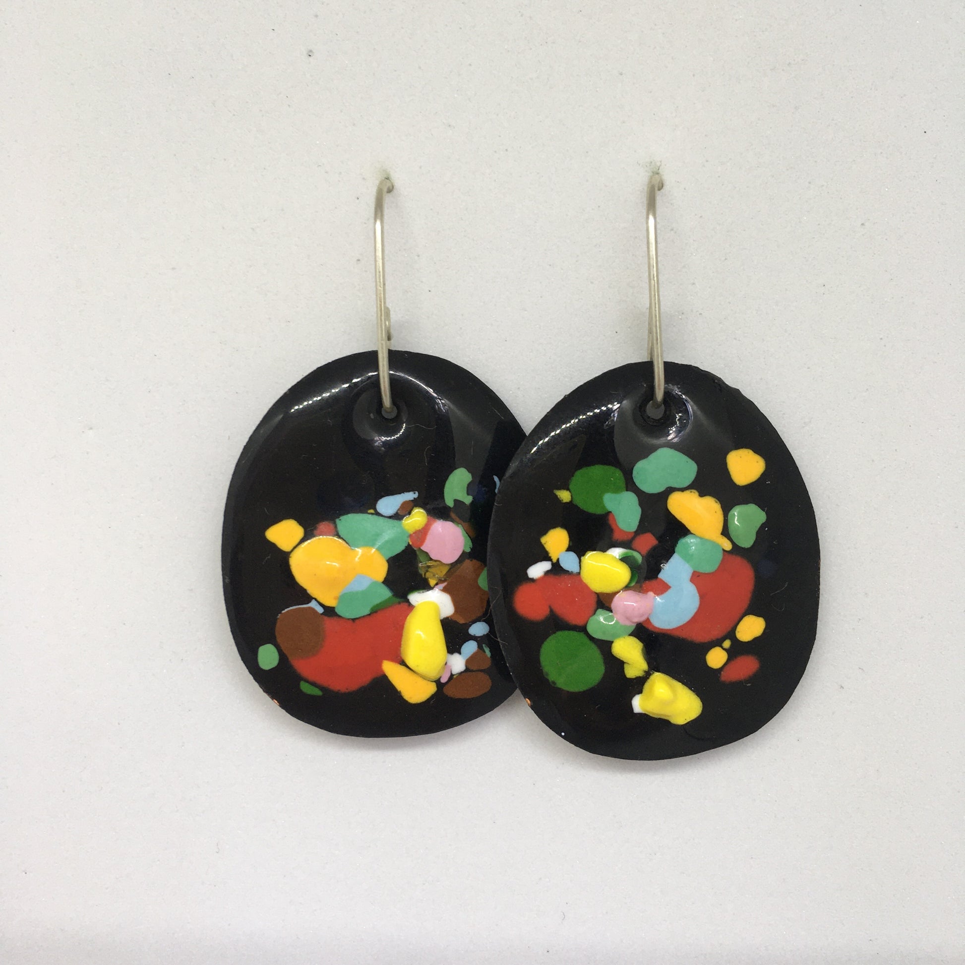 Jenna O'Brien is a Melbourne based jeweller who handcrafts colourful and engaging pieces. Handmade enamelled earring with handmade sterling silver hooks.