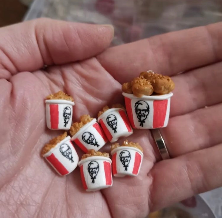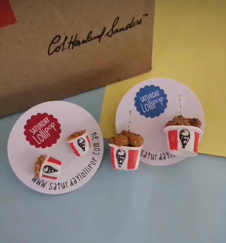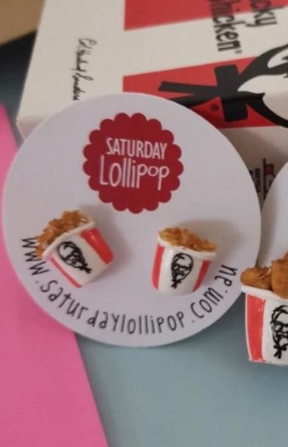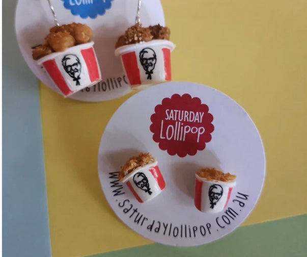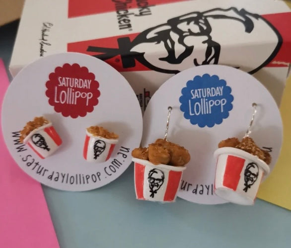 If your love for a bucket of chook is known, then it's time to show that love on your ears with these delightful bucket of chook studs and dangles.