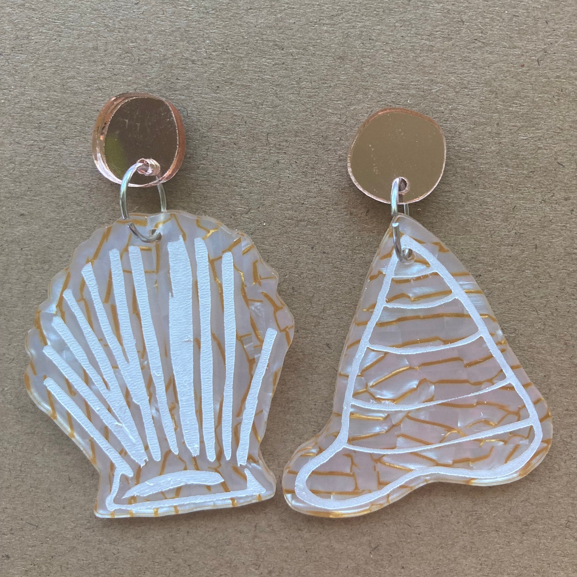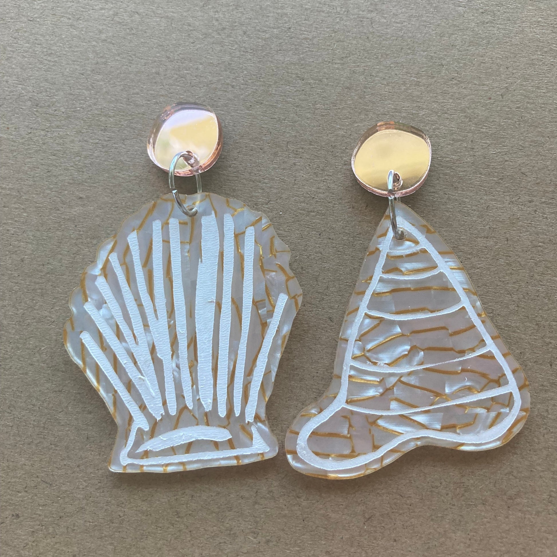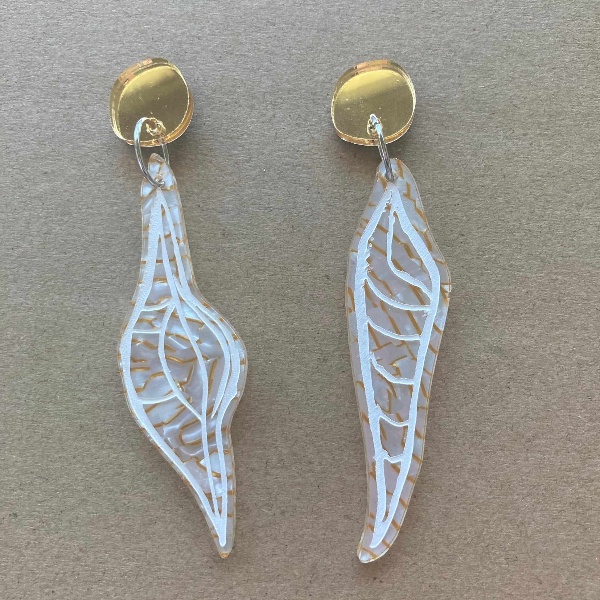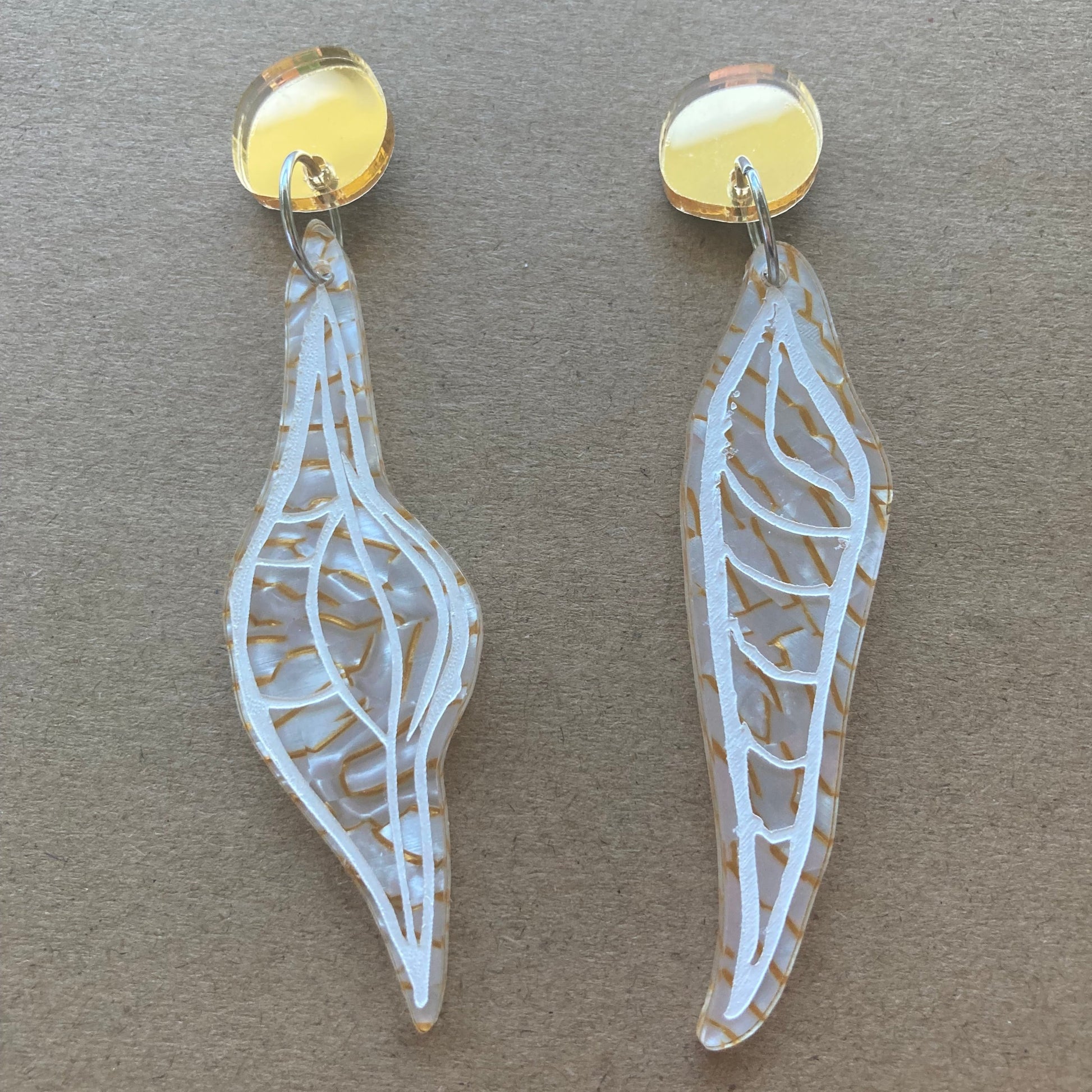 The earrings are laser cut acrylics that are hand painted with stainless steel findings.