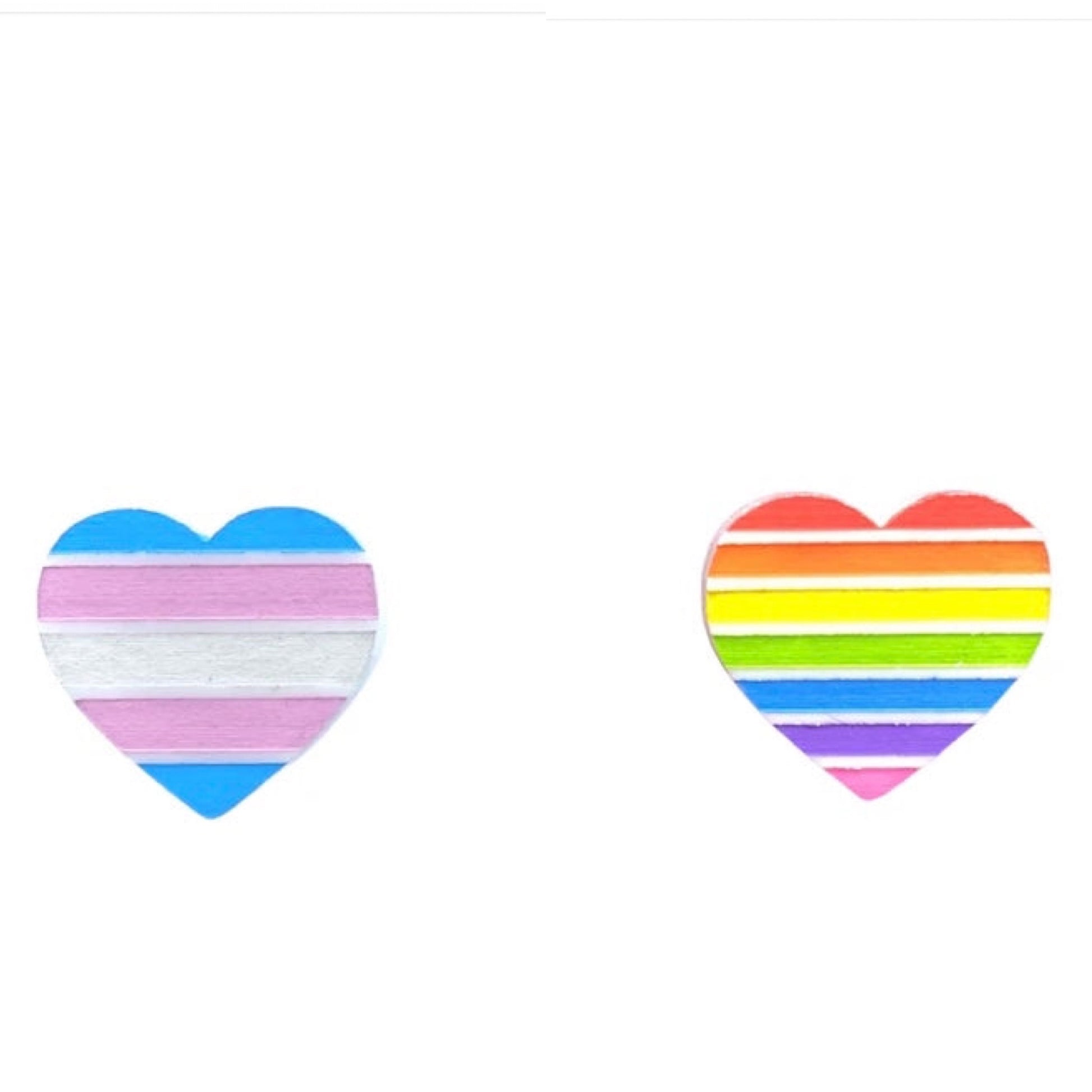 Hand painted hearts of pride supporting rainbow pride and trans pride.