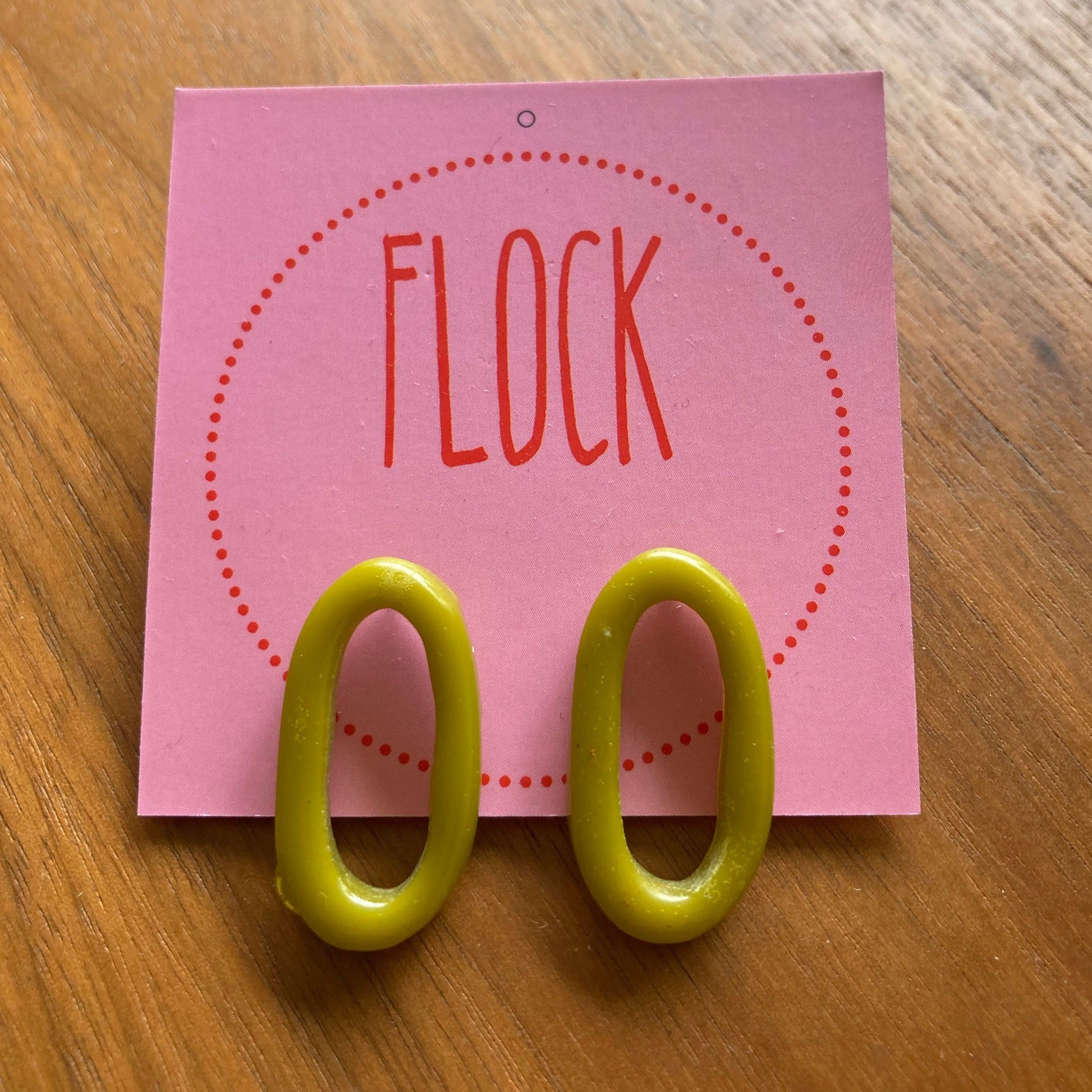 Flock Curiosity Assembly make earrings that are all made individually. No two pairs are the same! They may have slight imperfections like bubbles, but this just makes them even more unique.